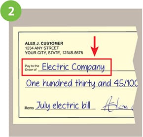 Sign your name on the line at the bottom right-hand corner using the signature you used when you opened the checking account. This shows the bank that you agree that you are paying the stated amount and to the correct payee.