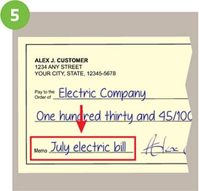 Filling out the line that says "Memo" is optional, but helpful for knowing why you wrote the check. If you are paying a check for a monthly electric bill or rent, you can write "Electric Bill" or "Monthly Rent" in the memo area. Often when you are paying a bill, the company will ask you to write your account number on the check in the memo area.
